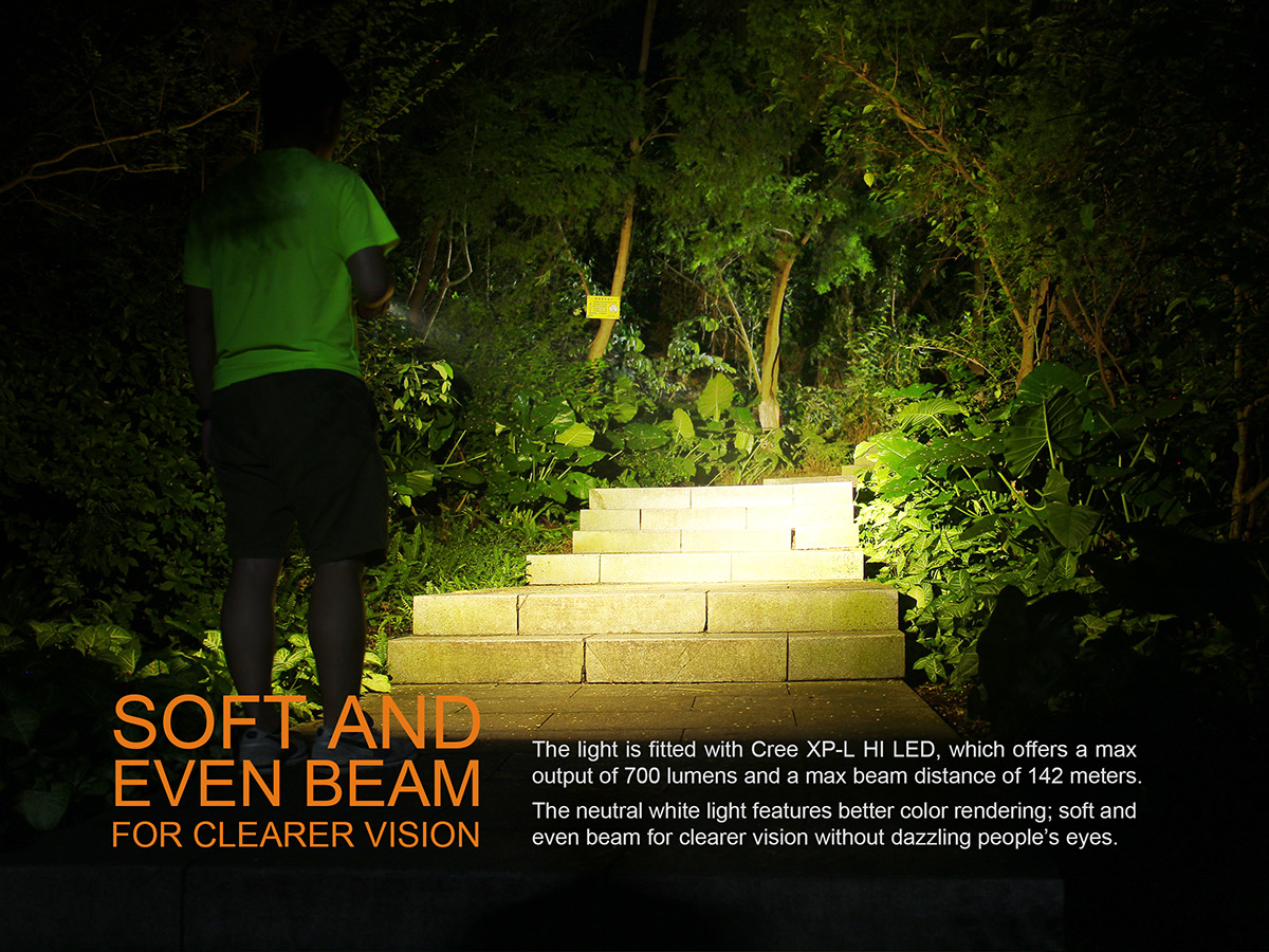 - Výkonná LED Cree XP-L HI s teplejším odstínem světla