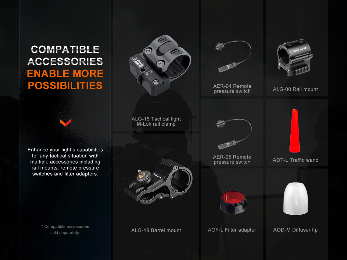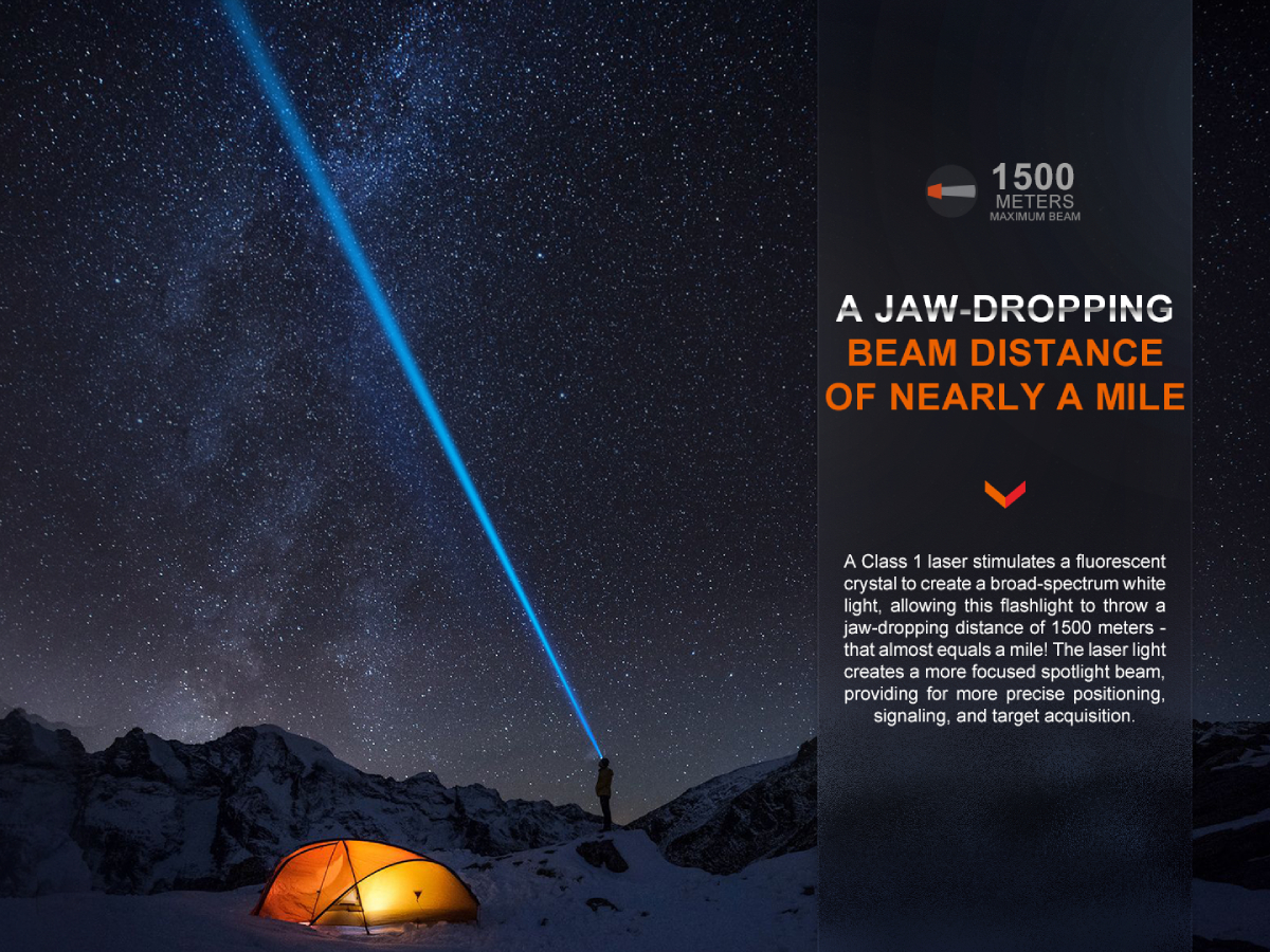 Nabíjecí laserová svítilna Fenix HT30R patří k taktickým svítilnám s největším dosvitem v nabídce. Její bílé laserové světlo vytváří extrémně zaostřený paprsek, který je schopen dosvítit až do vzdálenosti 1500 metrů a světelný tok je až 500 lumenů (ANSI). Světelným zdrojem je bílý laser s technologií LEP (laser excited phosphor), který je znám použitím především v automobilovém průmyslu u těch nejluxusnějších vozů. K napájení slouží jeden Li-ion akumulátor typu 21700 s kapacitou 5000 mAh (součástí balení), který se nabíjí přes USB-C konektor zabudovaným přímo pod závitem hlavy svítilny. Svítilna je tak i plně vodotěsná a prachotěsná dle standardu IP68 (testováno pod vodou v hloubce 2 metry). V případě nouze lze k napájení využít i 18650 akumulátor s redukcí ALF-18 (není součástí balení). Svítilna disponuje dvěma úrovněmi výkonu bílého světla s výdrží přes 7 hodin včetně stroboskopického blikání. Svítilna používá duální taktický spínač, který umožňuje rychlejší a spolehlivější ovládání v krizových situacích. Lze ji například rychle zapnout přímo do stroboskopického režimu. Světelný tok je koncentrován do úzkého kužele, čímž veškeré světlo dopadá na konkrétní cíl a svítilna je tak ideální k lovu a nasvětlování vzdálených cílů.