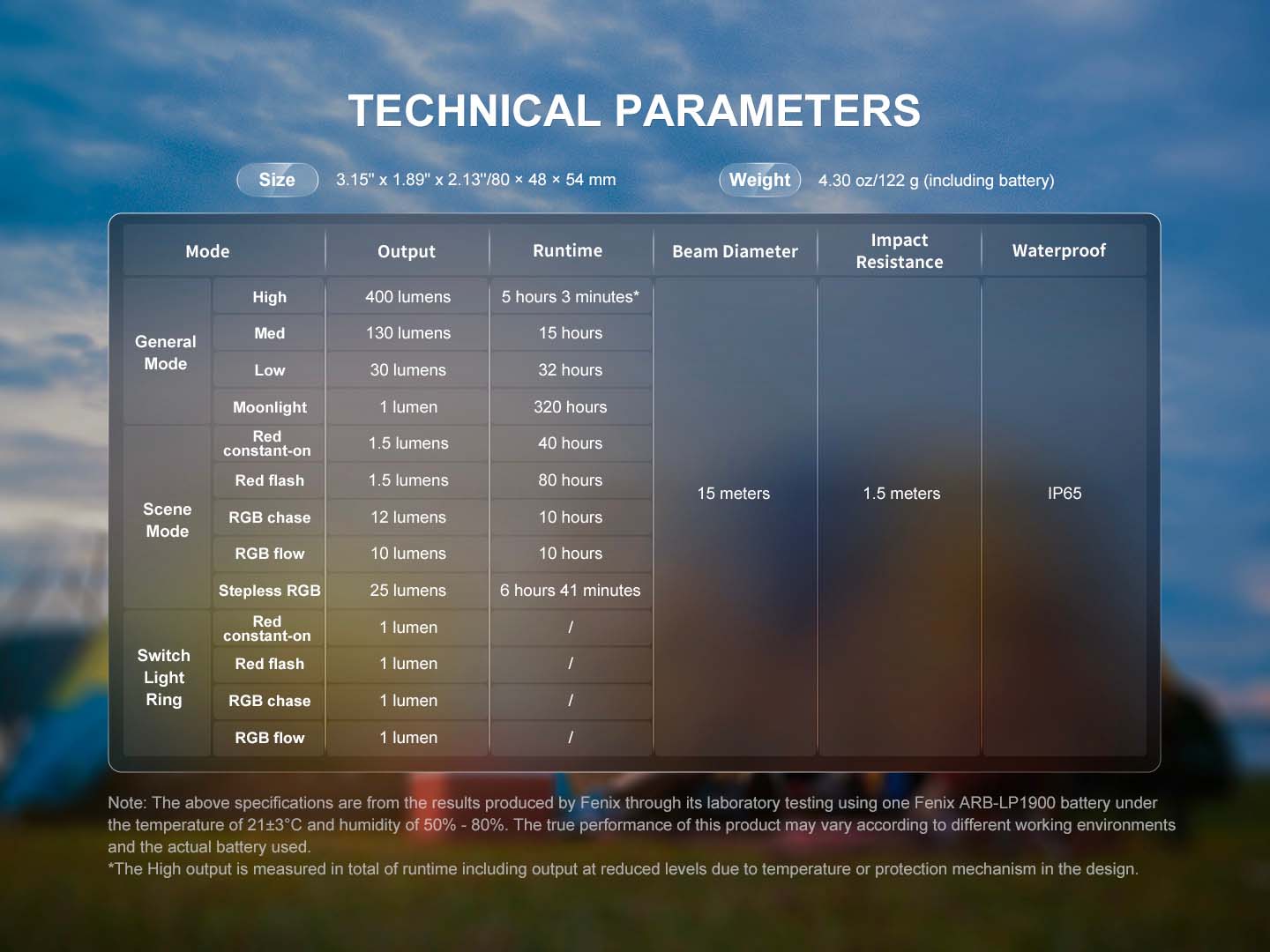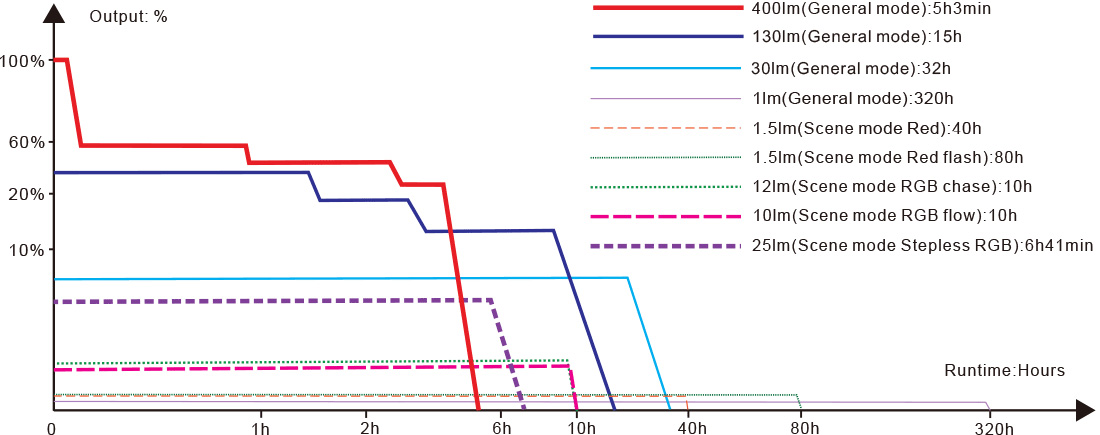Inteligentní ochrana proti přehřátí – Při dlouhodobém používání lucerny na vysoký režim výkonu se akumuluje velké množství tepla. Když dosáhne teploty 50 °C nebo vyšší, tak automaticky sníží výkon o několik lumenů, aby se teplota snížila. Když teplota klesne pod 50 °C, tak se výkon opět postupně zvýší.